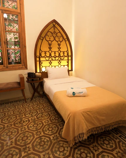 Nestled in the vibrant heart of Beirut, Beit Toureef is a charming heritage house that embodies the soul of an authentic Lebanese village home. With its rustic architecture and warm hospitality, Beit Toureef offers guests a genuine and memorable taste of Lebanon. The property consists of three nearby houses, offering a total of 20 rooms accommodating approximately 36 guests. Beit Toureef Home serves as the main house Residence and Saraya Hala are located just one minute away from the Home Guests are welcome to enjoy: All-day baladi breakfast from 8:00 am to 3:00 pm Lunch and dinner served from 1:00 pm to 11:00 pm Rooftop Jnayneh, open during the summer season only, from 4:00 pm to 11:00 pm Beit Toureef is designed for travelers seeking comfort, character, and an authentic Lebanese experience in the heart of the city.