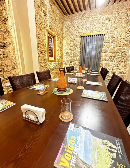 engagements, birthdays, private celebrations, and even photoshoot sessions. The room is fully equipped with everything needed for productive meetings, while still keeping the warmth and character of a traditional home. Its versatile layout allows the space to easily transform from a working environment into a social or creative setting. The meeting Room also opens its doors to artists and designers, offering a welcoming space for exhibitions, galleries, and creative showcases—supporting local talent and meaningful expression. At Beit Toureef, this room is more than a venue—it’s a space where ideas, people,