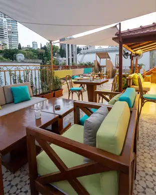 Up above the city, Jnayneh is our small garden in the sky. A peaceful rooftop filled with plants, flowers, and open views—where time slows down and the air feels lighter. It’s the perfect spot to enjoy refreshing drinks and light snacks, or simply sit back and take in the wide sky above Beirut. As the day turns into evening, Jnayneh